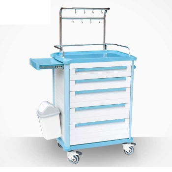 ABS發(fā)藥車 FG-B-04產(chǎn)品介紹:尺寸:658*475*1045MM1.包含6個小抽屜和3個大抽屜,多數(shù)量的藥盒供不同的儲存需要;2.4個直徑125的腳輪,兩個帶鎖,兩個不帶鎖;3.配有一個垃圾桶...
